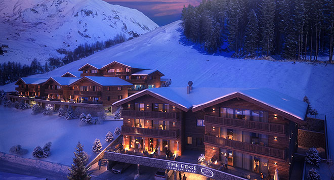 The Edge is a brand-new development built of 22 luxury apartments with one to three bedrooms at a starting price of CHF 1,066,436. The properties are contemporary, sleek and enjoy the most stunning views of the mountains and quaint Swiss village. Exceptional hotel services are available as well as professional rental management, on-site dining, and an extensive wellness area featuring a swimming pool, sauna and steam bath. With a prime ski in position, owners of The Edge have the slopes of Austria and Switzerland right by their door.