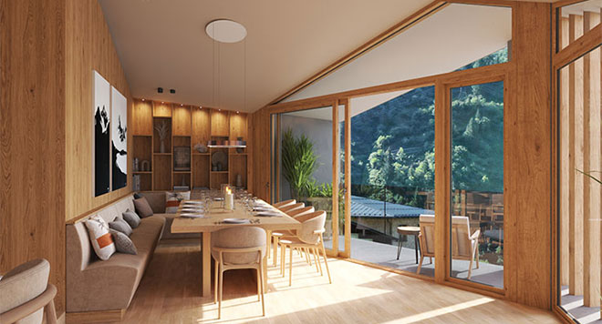 It’s not just this that makes the project so special, it’s the extraordinary property itself. Offering apartments, penthouses and chalets, Adelaide caters to all and gives the option for owners to customise the finish to their own taste. Built by an eminent developer in Grimentz, the interiors boast the highest quality of materials with locally sourced wood, providing a truly cosy yet elegant traditional Swiss charm. The prestigious positioning of Adelaide at 1600 metres ensures that each owner has ski in, ski out access to 220km of slopes.