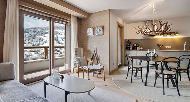 Moving over into Les Trois Vallees, if you’re an avid skier, what’s more to wish for other than ski in, ski out access to over 600km of world-famous pistes? La Dame Blanche will have you more than satisfied. Positioned just a short walk from the centre of Les Menuires, the properties claim exceptionally sunny, south facing views soaked in peace and quiet.