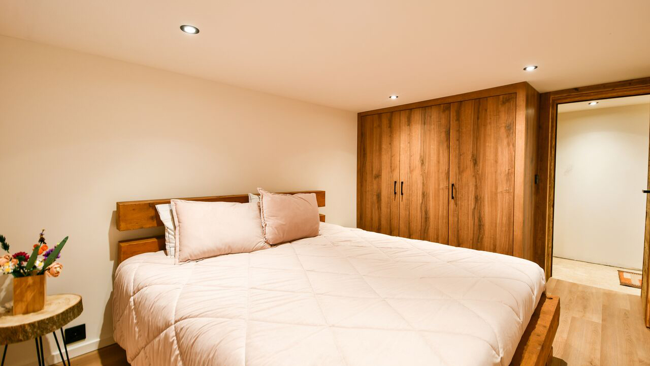 Now, the chalet offers a beautifully designed interior featuring three double bedrooms and a master ensuite with built-in wardrobes on the top floor.