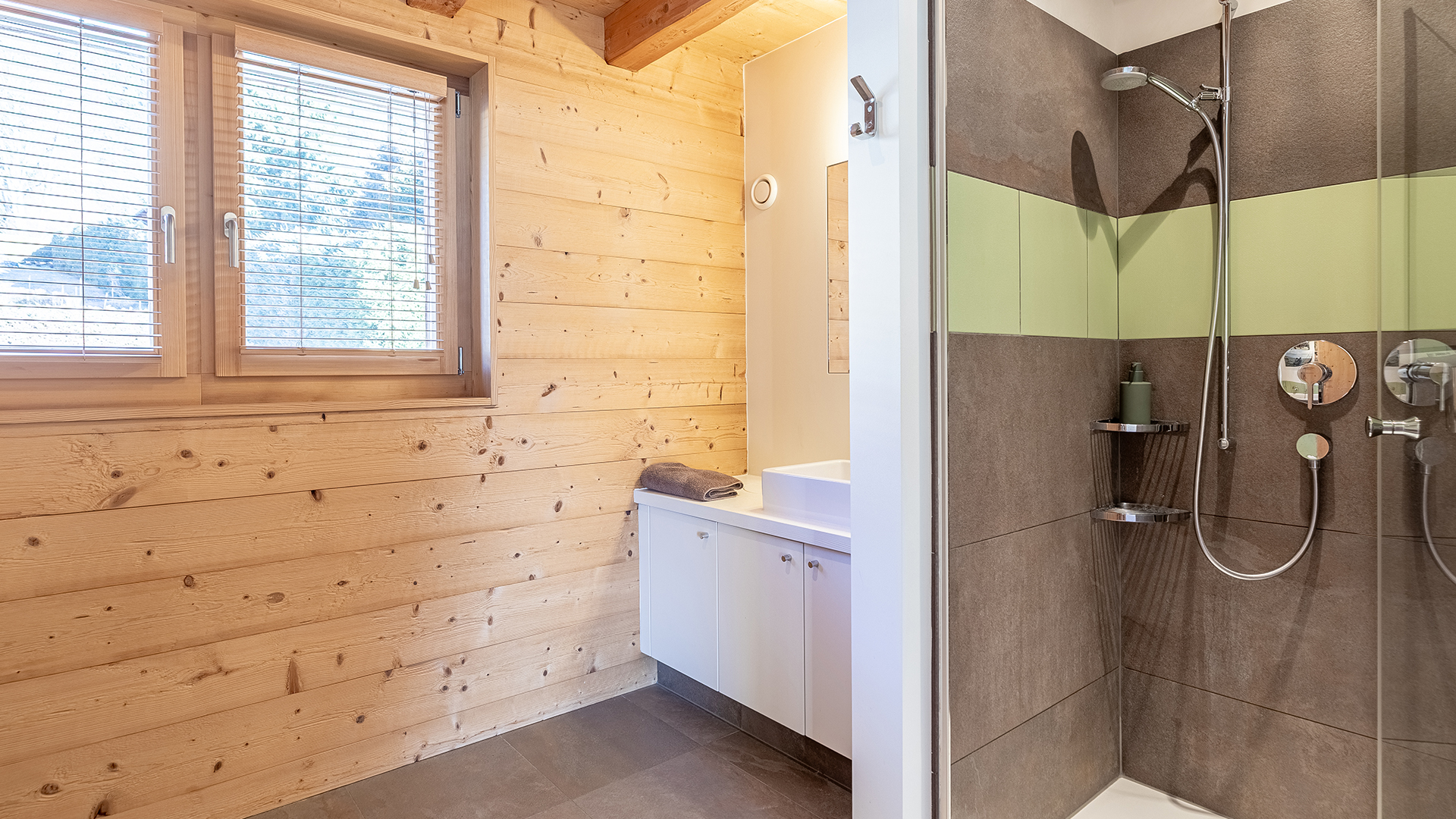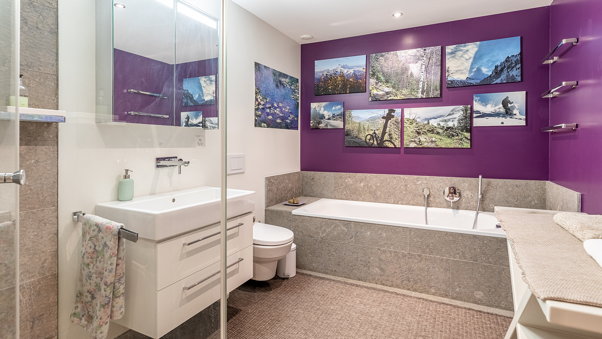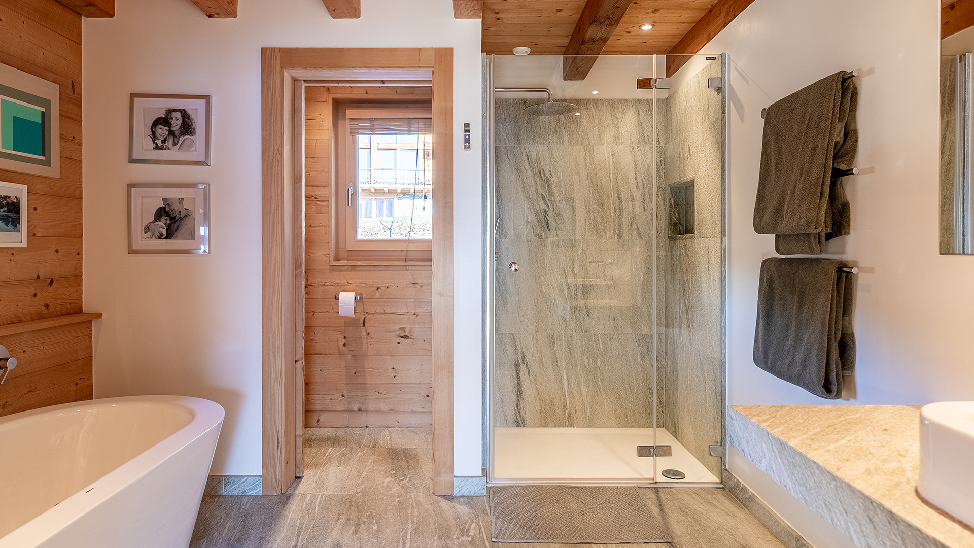 The lower ground floor offers a large multi-purpose room, a bright garden-access bedroom, a bathroom, laundry room, wine cellar and ski storage.